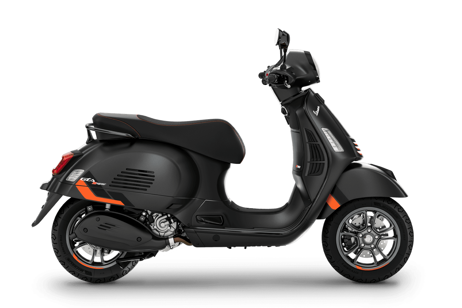 • Ready for every challenge: The sportiest Vespa Grand Tourer of all comes in matte and glossy colors with carbon-look inserts and shiny black finishing touches. Its forceful personality combines with the seat in high-quality material with contrast stitching. With all this and much more, the Vespa Gts SuperSport transforms your life into a thrilling challenge.